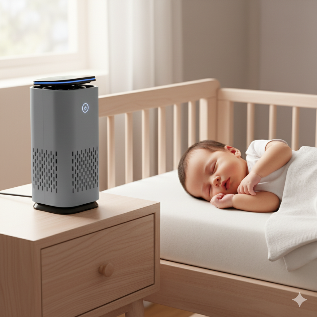 Our purifier is engineered with high-efficiency filtration that targets and removes PM2.5 — the most harmful pollutant for your lungs. It captures fine particles, dust, smoke, and allergens to ensure noticeably cleaner air within minutes.